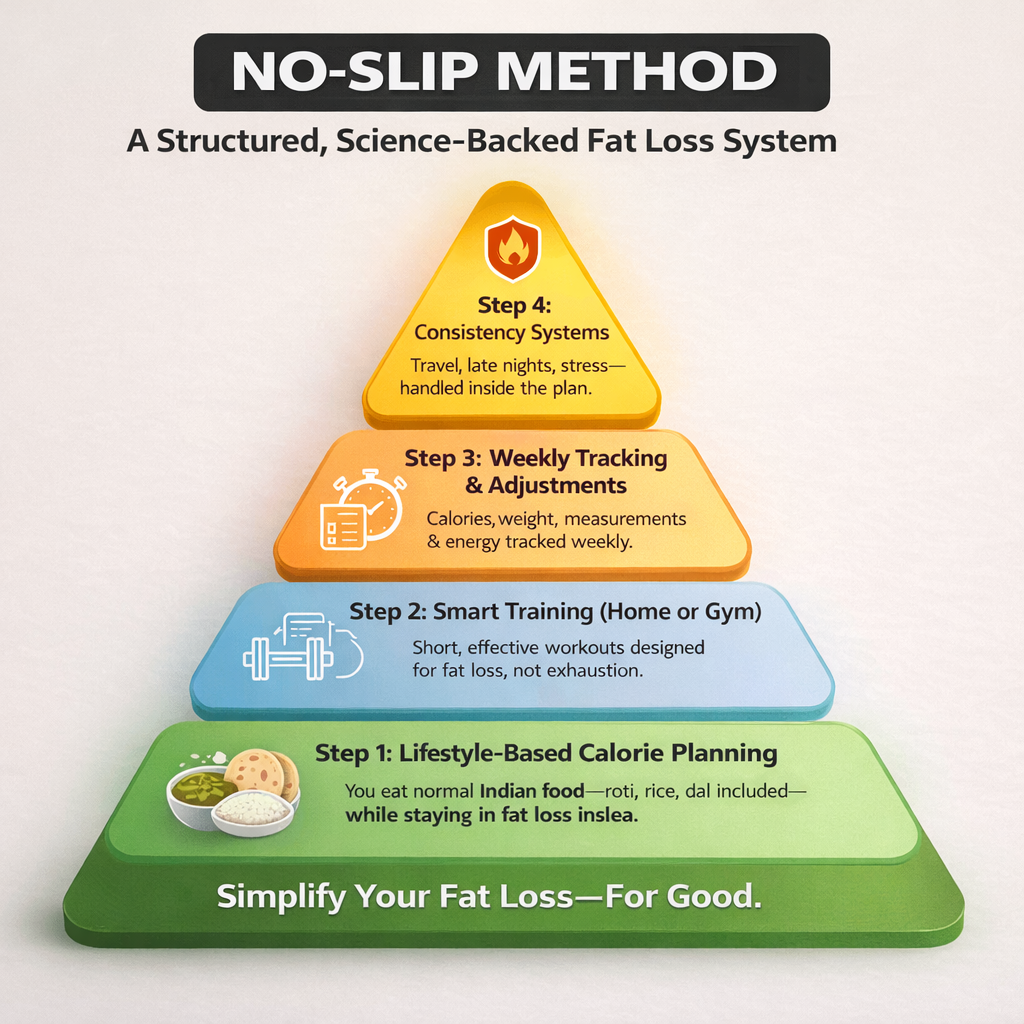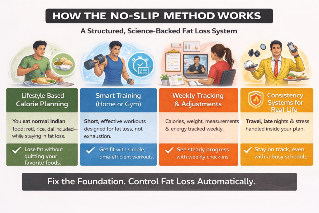 That’s exactly why Kartikay created the No-Slip Method — a system designed to reprogram fat loss from the root, not force it through willpower.